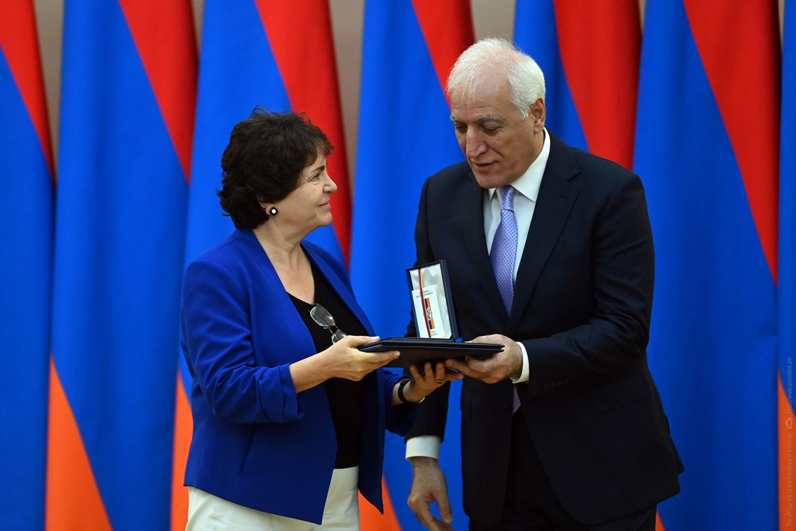 Հանրապետության նախագահի նստավայրում տեղի ունեցած պարգևատրման հանդիսավոր արարողությանը նախագահ Վահագն Խաչատուրյանը հանձնել է պետական բարձր պարգևները, այնուհետև հանդես է եկել ելույթով: