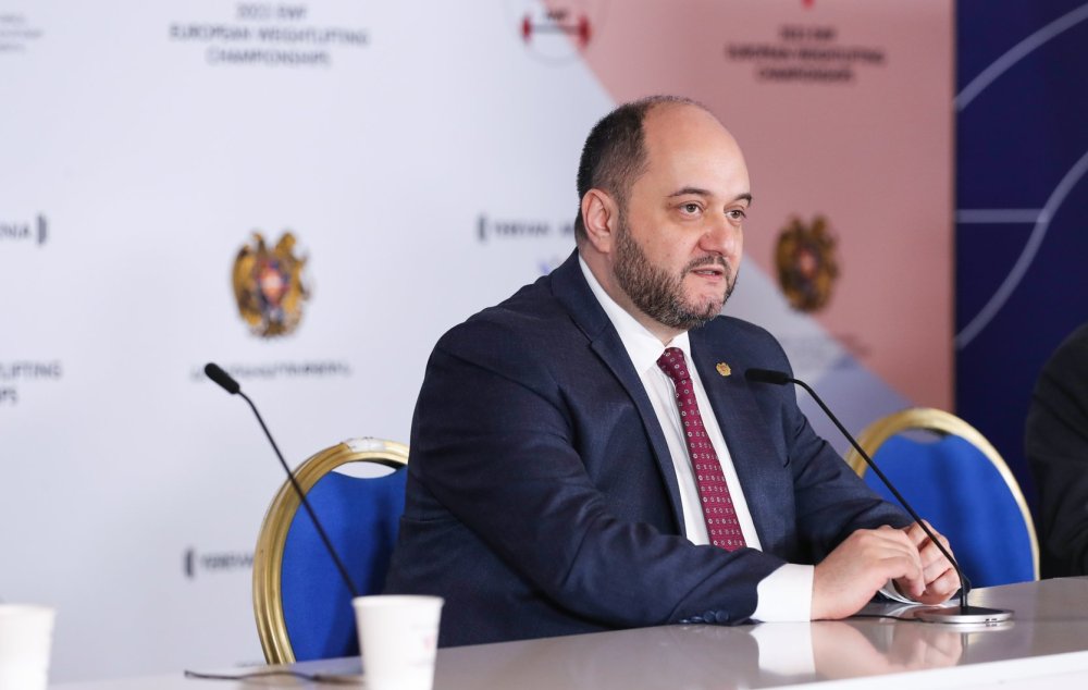 Վարչապետի աշխատակազմի ղեկավար, Ծանրամարտի Եվրոպայի 2023թ. առաջնության անցկացման աշխատանքների նախապատրաստման և կազմակերպման միջգերատեսչական հանձնաժողովի նախագահ Արայիկ Հարությունյանն այսօր մասնակցել է Ծանրամարտի Եվրոպայի մեծահասակների առաջնությանը նվիրված մամուլի ասուլիսին: