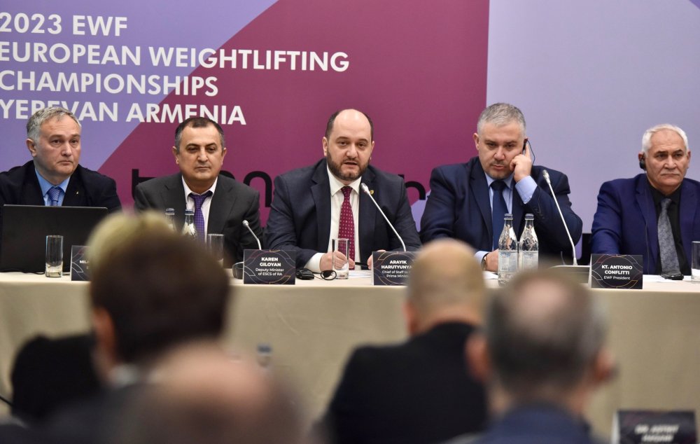 Վարչապետի աշխատակազմի ղեկավար, Ծանրամարտի Եվրոպայի 2023թ․ առաջնության անցկացման աշխատանքների նախապատրաստման և կազմակերպման միջգերատեսչական հանձնաժողովի նախագահ Արայիկ Հարությունյանն այսօր մասնակցել է Եվրոպայի ծանրամարտի ֆեդերացիայի (EWF) կոնգրեսին, որը Երևանում անցկացվում է առաջին անգամ: