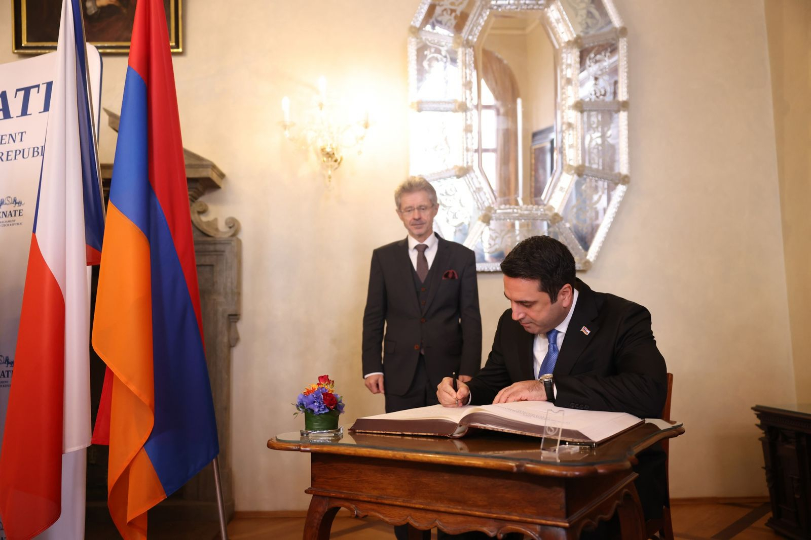 Հանդիպման ավարտին ՀՀ ԱԺ նախագահը գրառում է կատարել Սենատի Պատվավոր հյուրերի գրքում։