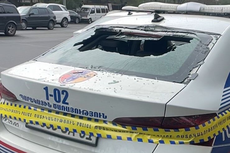 Զննության ընթացքում հայտնաբերվել և վերցվել է պարեկային ծառայության ավտոմեքենայի վրա նետված քարը։