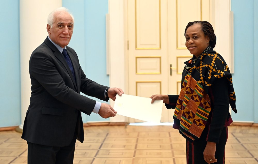 Հանրապետության նախագահ Վահագն Խաչատուրյանին իր հավատարմագրերն է հանձնել Հայաստանի Հանրապետությունում Գանայի Հանրապետության արտակարգ և լիազոր դեսպան Լեսլի Աքուա Օպոկու-Վարեյը: