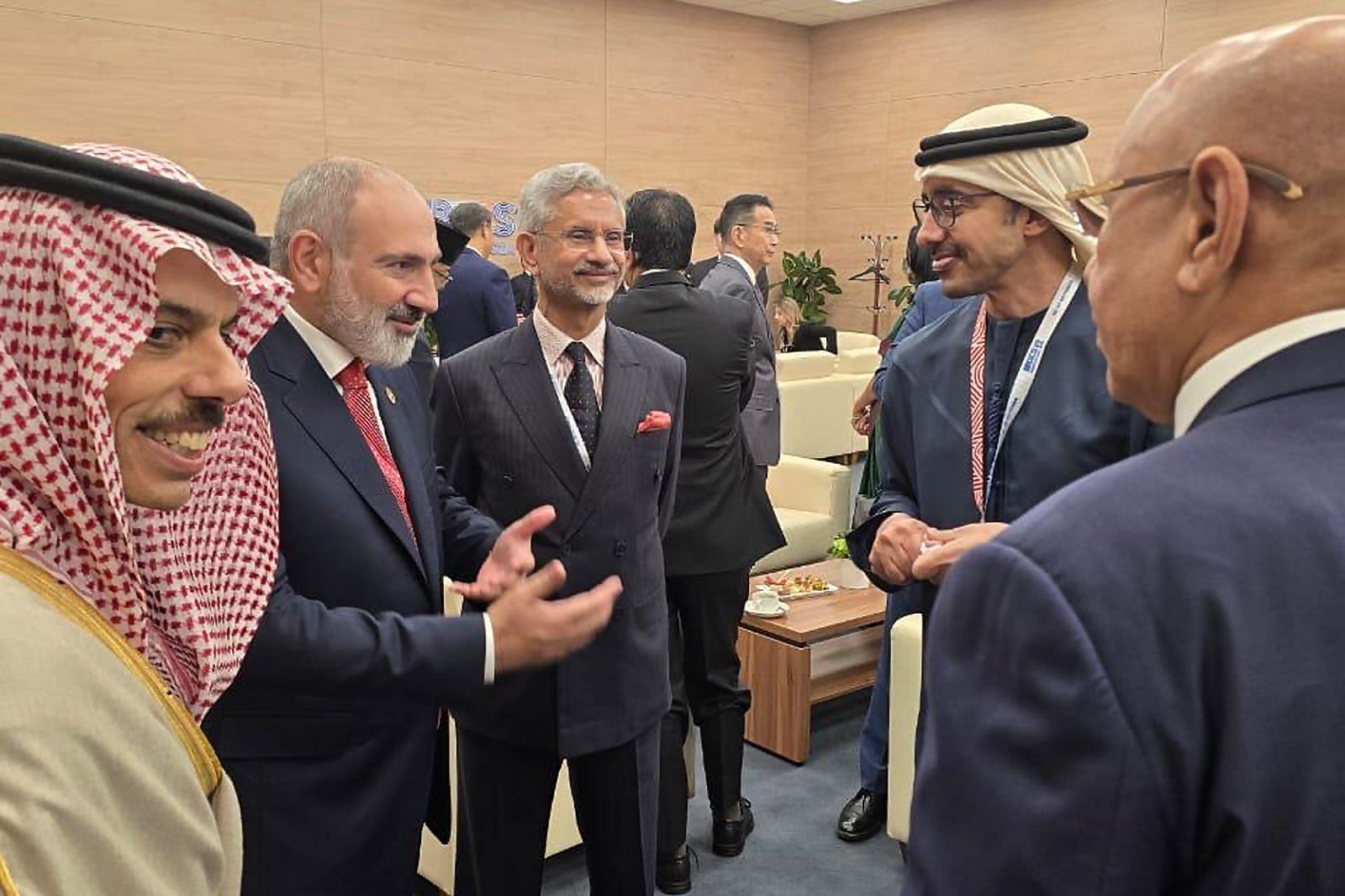 Մասնավորապես, վարչապետը մտքեր է փոխանակել ՉԺՀ-ի նախագահ Սի Ծինփինի, Հնդկաստանի արտաքին գործերի նախարար Սուբրամանյամ Ջայշանկարի, Արաբական Միացյալ Էմիրությունների փոխվարչապետ, Արտաքին գործերի նախարար Աբդալլա բեն Զայիդ Ալ Նահայանի հետ: