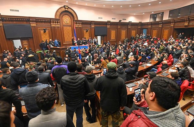 Այնուհետև, Ա.Բ.-ն գնացել է Կ.Դեմիրճյան փողոց և, միանալով ՀՀ Ազգային ժողովի նախագահ Արարատ Միրզոյանի նկատմամբ բռնություն գործադրող զանգվածային անկարգությունների մասնակիցներին, փորձել է բռնություն գործադրել ԱԺ նախագահ Ա.Մ.-ի նկատմամբ, սակայն, իր կամքից անկախ հանգամանքներով, չի կարողացել ավարտին հասցնել հանցագործությունը: