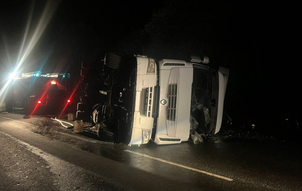 Պարզվել է, որ Գորիս-Կապան ավտոճանապարհի 44-րդ կմ-ին Renault մակնիշի բեռնատարը (վարորդ՝ Ն. Ջ. Ս.) կողաշրջվել է ճանապարհի երթևեկելի հատվածում՝ դարձնելով այն միակողմանի. առկա է վառելիքի արտահոսք: