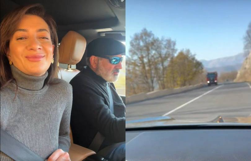 Վարչապետն ու տիկինը մեքենայով երթևեկում են: Ղեկին Նիկոլ Փաշինյանն է: