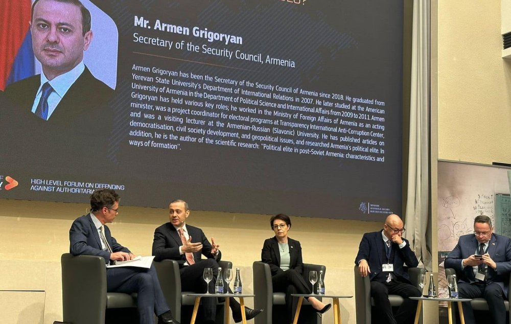 Ֆորումի ընթացքում ԱԽ քարտուղարը նշել է Հայաստանում իրականացվող ժողովրդավարության համապարփակ բարեփոխումների մասին՝ շեշտելով դրանց առաջնահերթությունը ՀՀ կառավարության համար և ընդգծել դրանց դերը՝ նպաստելու երկրի դիմակայունության բարձրացմանը:
