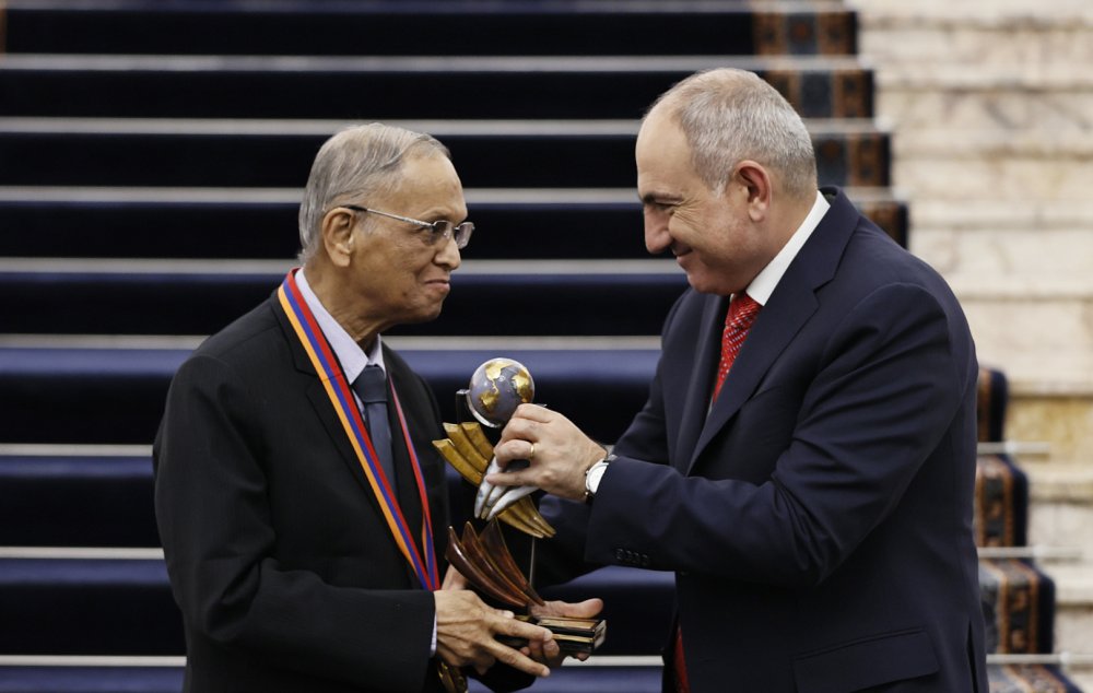 Վարչապետ Նիկոլ Փաշինյանը տեղեկատվական տեխնոլոգիաների ոլորտում համաշխարհային ներդրման համար ՀՀ պետական մրցանակը հանձնել է «Infosys Limited» ընկերության հիմնադիր Նարայանա Մուրթիին: