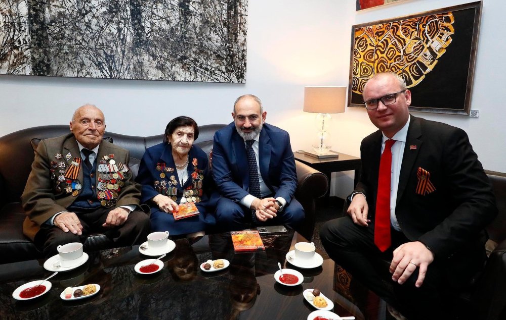 Վարչապետ Նիկոլ Փաշինյանը Մոսկվայում հանդիպել է Հայրենական մեծ պատերազմի վետերաններ՝ Ռոզալիա Աբգարյանին եւ Ներսես Սիմոնյանին: Նրանք այստեղ են ժամանել Երևանից և ներկա գտնվել Կարմիր հրապարակում հաղթանակի 78-րդ տարեդարձին նվիրված զորահանդեսին: