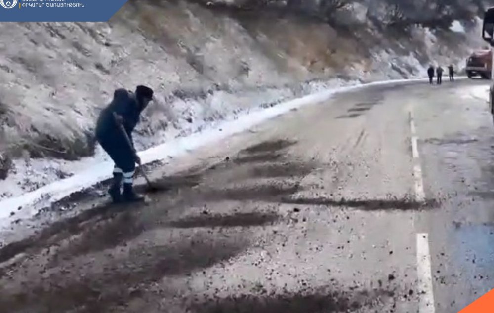 Փրկարարներն Աղվանի-Տաթև ավտոճանապարհի 1-ին կմ-ին իրականացրել են մերկասառույցի մշակման աշխատանքներ. խցանումից դուրս է եկել 103 տրանսպորտային միջոց. ավտոճանապարհը երկկողմանի երթևեկելի է: