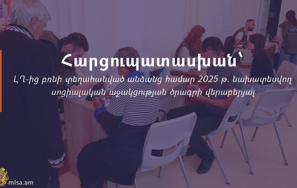 ՀՀ աշխատանքի և սոցիալական հարցերի նախարարությունը ներկայացրել է հարցուպատասխան ԼՂ-ից բռնի տեղահանված անձանց համար 2025 թվականից նախատեսվող սոցիալական աջակցության ծրագրի վերաբերյալ: