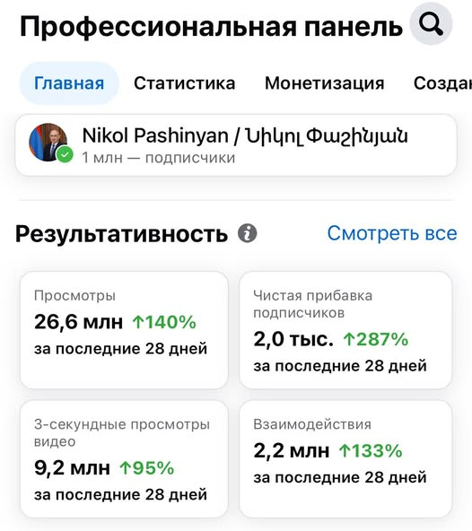 Վարչապետ Նիկոլ Փաշինյանը ներկայացրել է սոցիալական ցանցի իր էջի դիտումները։