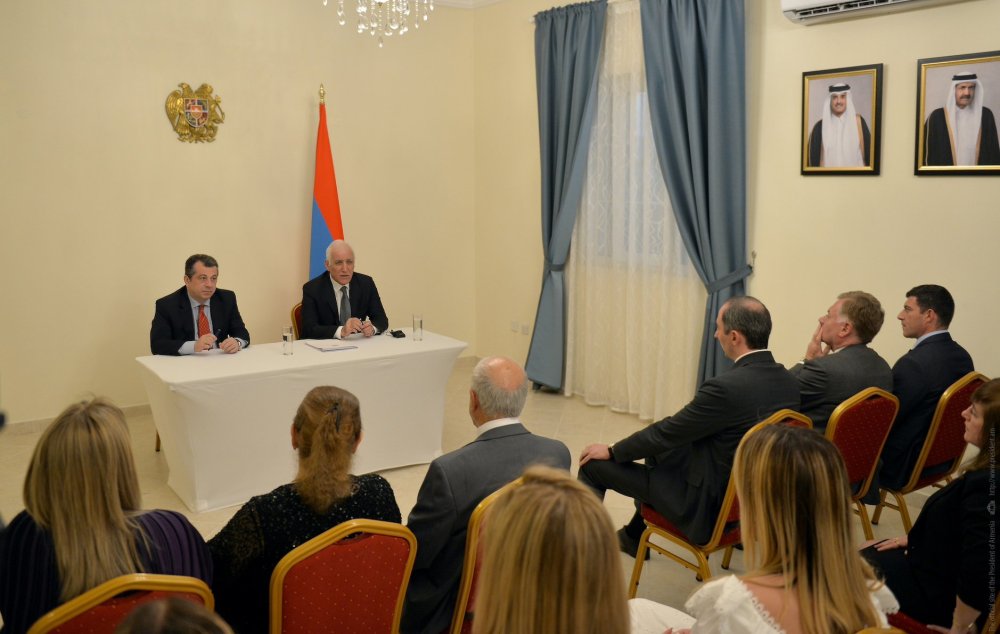 Հանրապետության նախագահ Վահագն Խաչատրյանը Կատարի Պետությունում Հայաստանի Հանրապետության դեսպանատանը հանդիպել է Կատարի հայ համայնքի ներկայացուցիչների հետ: