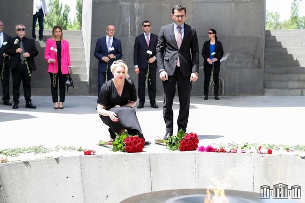 Պատվիրակության անդամները ծաղկեպսակ ու ծաղիկներ են դրել Հայոց ցեղասպանության զոհերի հիշատակը հավերժացնող անմար կրակի մոտ, լռությամբ ու խոնարհումով հարգել Սուրբ նահատակների հիշատակը: