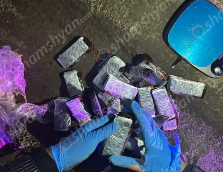 Հայտնաբերվել է 3,981 գ «մարիխուանա», 5,474 գ «հերոյին» տեսակի թմրամիջոցներին նմանվող զանգվածներ և 2,000 հատ «մեթադոն» տեսակի դեղահաբ: