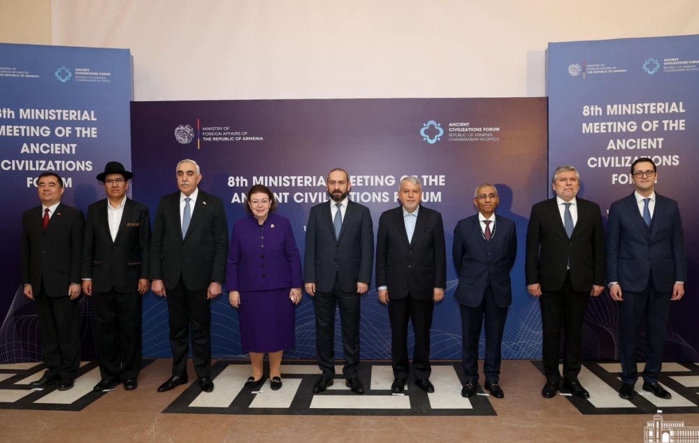 ՀՀ ԱԳ նախարար Արարատ Միրզոյանի նախագահությամբ Երևանում մեկնարկել է հնագույն քաղաքակրթությունների ֆորումի 8-րդ նախարարական հանդիպումը։ Հանդիպմանը մասնակցում են Հունաստանի մշակույթի նախարարը, Իրանի մշակութային ժառանգության, զբոսաշրջության և ձեռարվեստի նախարարը, Իրաքի ԱԳ նախարարի տեղակալը, Եգիպտոսի, Պերուի, Իտալիայի, Չինաստանի, Բոլիվիայի ներկայացուցիչներ։ Այս մասին տեղեկացնում են ՀՀ ԱԳՆ-ից: