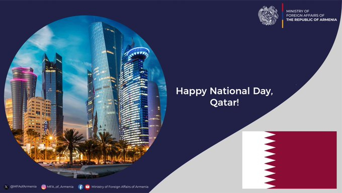 Հայաստանի Հանրապետության արտաքին գործերի նախարարությունն Ազգային օրվա կապակցությամբ շնորհավորել է Կատարի Պետության կառավարությանն ու ժողովրդին։