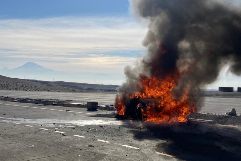 Պարզվել է, որ Երևան-Գյումրի ավտոճանապարհի 63-րդ կմ-ին բախվել են «BMW» (վարորդ՝ Ս․ Մ․, ծնված 1960 թ․) և «Mercedes-Benz» (վարորդ` Գ. Ի., ծնված 1983 թ․) մակնիշների ավտոմեքենաները․ «BMW» մակնիշի ավտոմեքենան բռնկվել է, տուժածներ չկան։