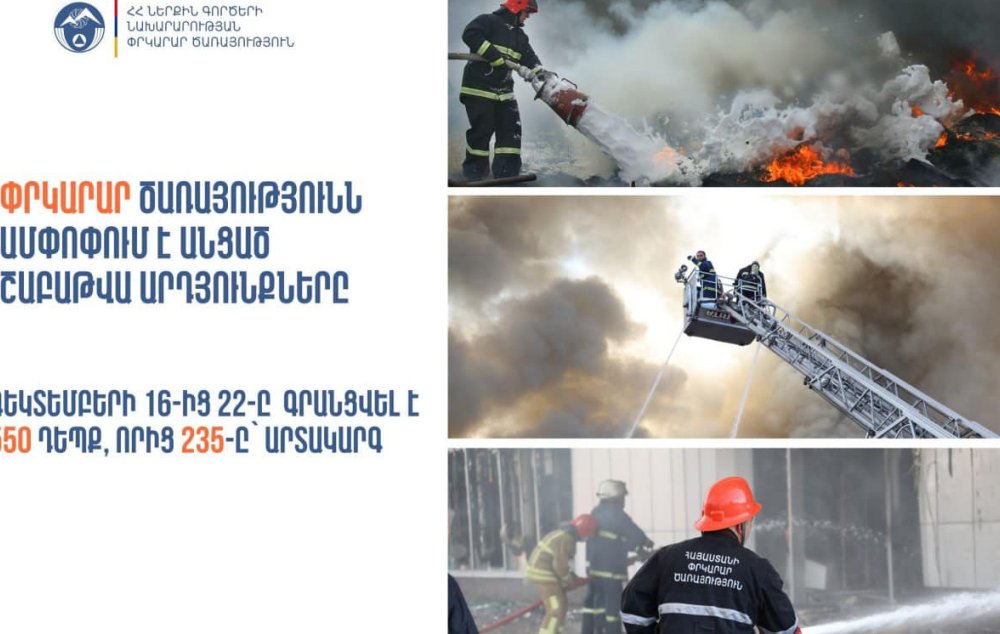 Դեկտեմբերի 16-22-ը ՆԳՆ ՓԾ ճգնաժամային կառավարման ազգային կենտրոնում գրանցվել է 550 դեպք, որից 235-ը՝ արտակարգ: Այս մասին տեղեկացնում են ՆԳՆ Փրկարար ծառայությունից: