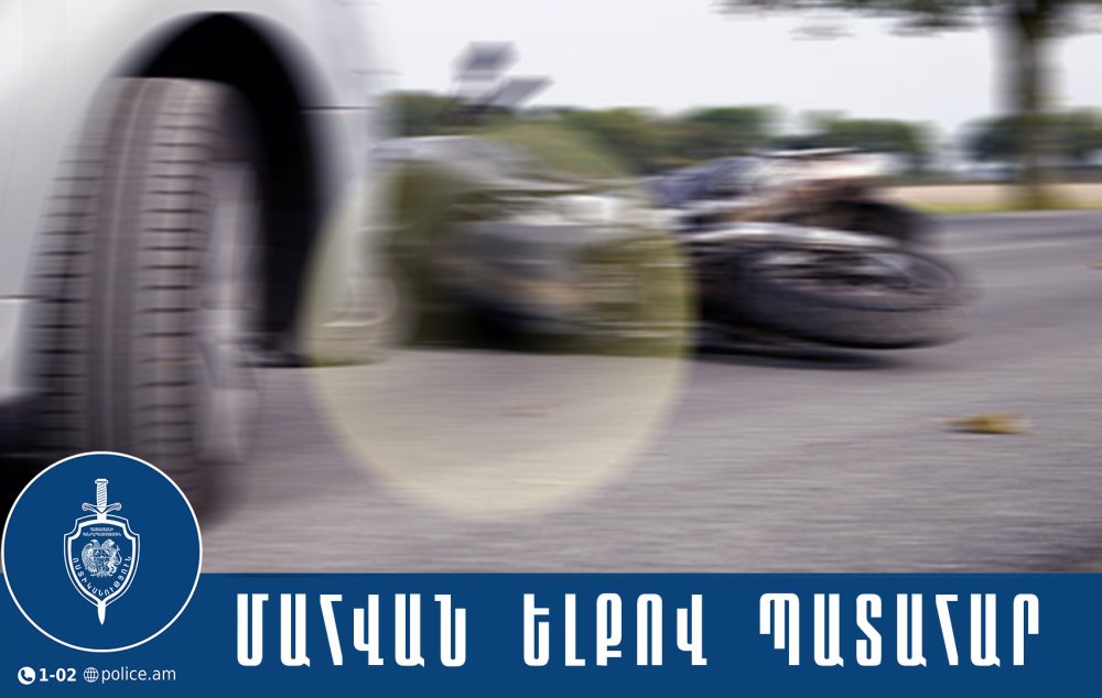 Դեկտեմբերի 24-ին՝ ժամը 18.10-ին, մայրաքաղաքի Խորենացու փողոցում միմյանց են բախվել «Մինի Կուպեր» մակնիշի մեքենան և «Սուզուկի» մոտոցիկլետը: Մոտոցիկլետավար, Եղվարդի բնակիչ 47-ամյա Գէորգ Պ.-ն հիվանդանոց տեղափոխվելու ճանապարհին մահացել է: Այս մասին տեղեկացնում են ՆԳՆ ոստիկանությունից: