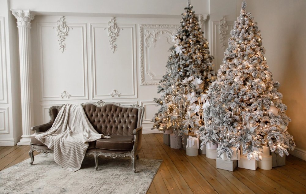 մոխրագույնը: Դուք կարող եք զարդարել ձեր տոնածառը այս երանգների ծաղիկներով՝ ավելացնելով արծաթե
