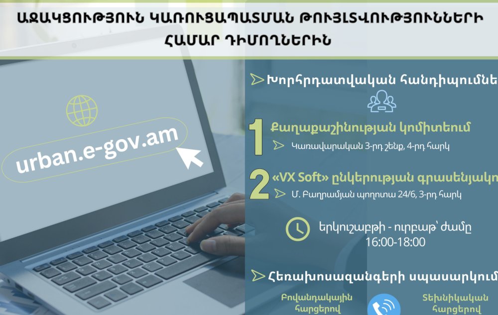 Դիմողներին աջակցելու նպատակով կազմակերպվում են խորհրդատվական հանդիպումներ, որոնց մասնակցելու համար անհրաժեշտ է նախապես գրանցվել urban.e-gov.am հարթակի «Առցանց հերթագրումներ» բաժնում (https://urban.e-gov.am/hy/service/permits_online_booking/info)։