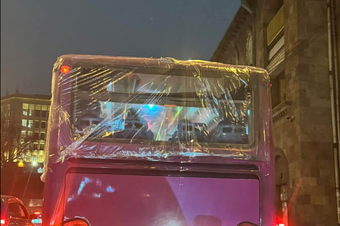 Լուսանկարը անելու պահին ավտոբուսը չի եղել երթուղում, չի սպասարկել քաղաքացիներին, ավելին` այն վարորդների փոխադրումը կազմակերպելու համար է նախատեսված։ Իսկ տվյալ պահին, երբ լուսանկարվել է, մեքենայի հետնամասը վթարելուց հետո վարորդը մեքենան Թևոսյան 5 հասցեի հավաքակայան տեղափոխելիս է եղել»։