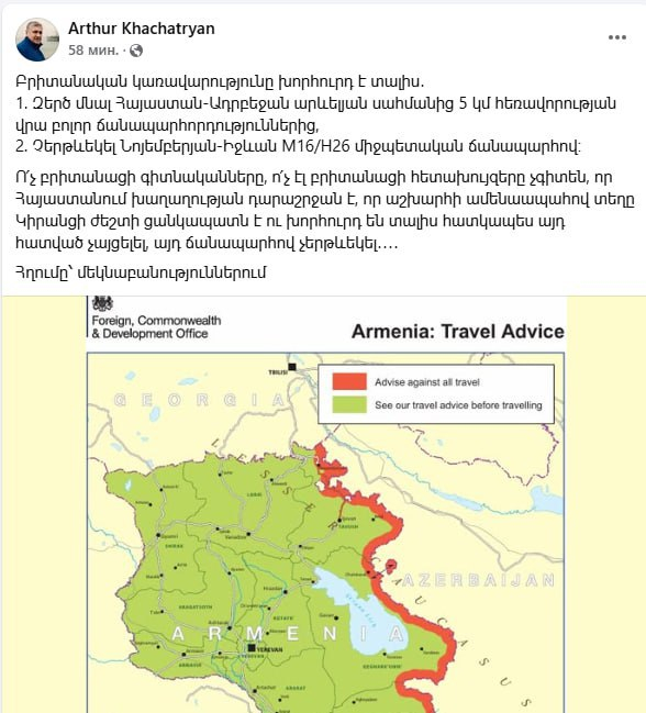 ԱԺ պատգամավորի կողմից հանրությանը նման ձևով մոլորեցնելու և սթրեսի ենթարկելու գործելաոճը խիստ դատապարտելի է։ Իսկ ինչ «ահասարսուռ» փաստ է «հայտնաբերել» դաշնակ գործիչը։ Խաչատրյանը, հղում անելով Բրիտանական կառավարության՝ իր քաղաքացիների համար պարբերաբար թարմացվող և արդեն իսկ սովորական դարձած հրապարակմանը, «գուժում է», թե Բրիտանական կառավարությունը խորհուրդ չի տալիս երթևեկել ՀՀ որոշ սահմանամերձ շրջանների ճանապարհներով։