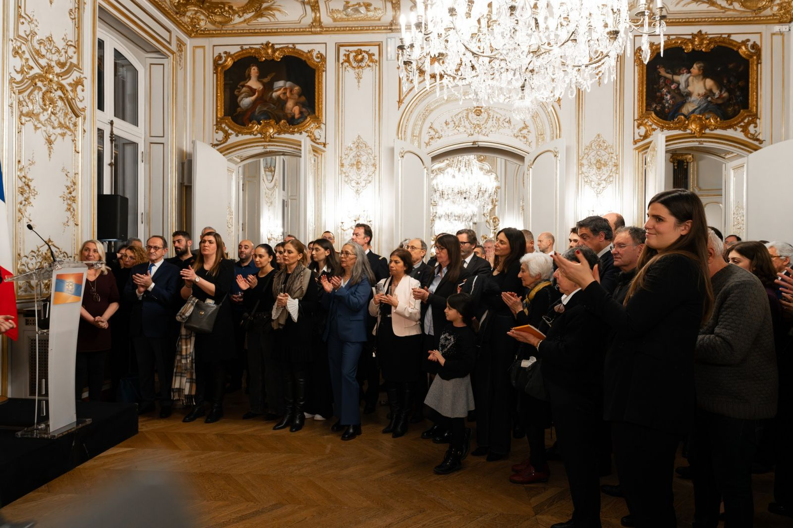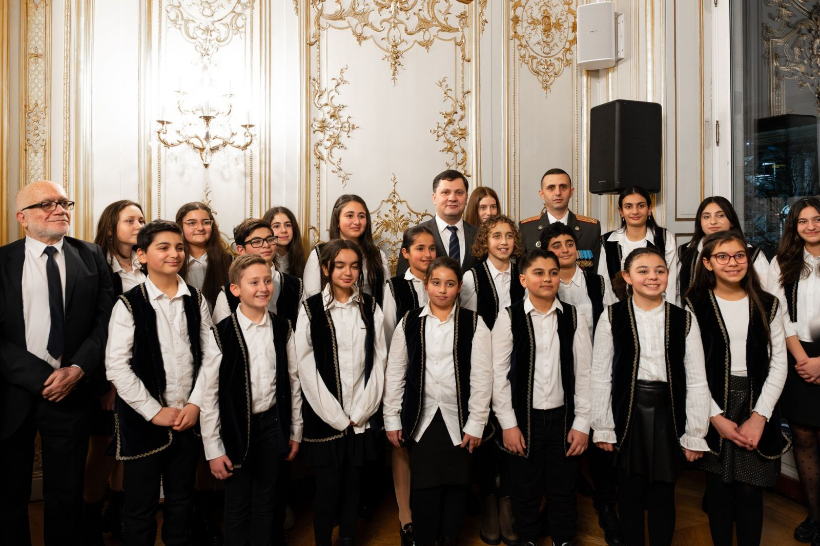 Ընդունելությանը տնօրեն Հայկ Սարգսյանի ղեկավարությամբ «Դպրոցասեր» հայկական վարժարանի սաները կատարել են Հայաստանի և Ֆրանսիայի ազգային, ինչպես նաև՝ ՀՀ Զինված ուժերի օրհներգերը։
