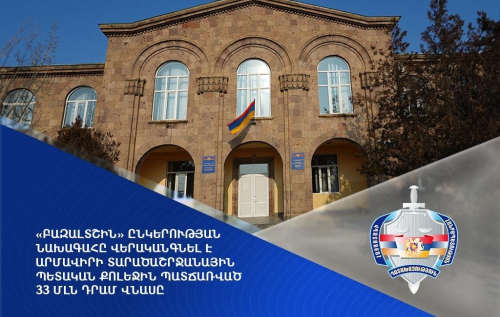 Մասնավորապես՝ Հակակոռուպցիոն կոմիտեում քննվող քրեական վարույթով տեղեկություններ են ստացվել, որ 2019 թվականի նոյեմբերի 8-ին «Արմավիրի տարածաշրջանային պետական քոլեջ» ՊՈԱԿ-ի և Կրթության, գիտության, մշակույթի և սպորտի նախարարության միջև կնքվել է պայմանագիր, որով ՊՈԱԿ-ի հաշվեհամարին է փոխանցվել 156 մլն 721 հազար 600 դրամ՝ ՊՈԱԿ-ի շենքային պայմանները բարելավելու և արհեստագործական մասնաշենքի շինարարական աշխատանքները կազմակերպելու նպատակով: