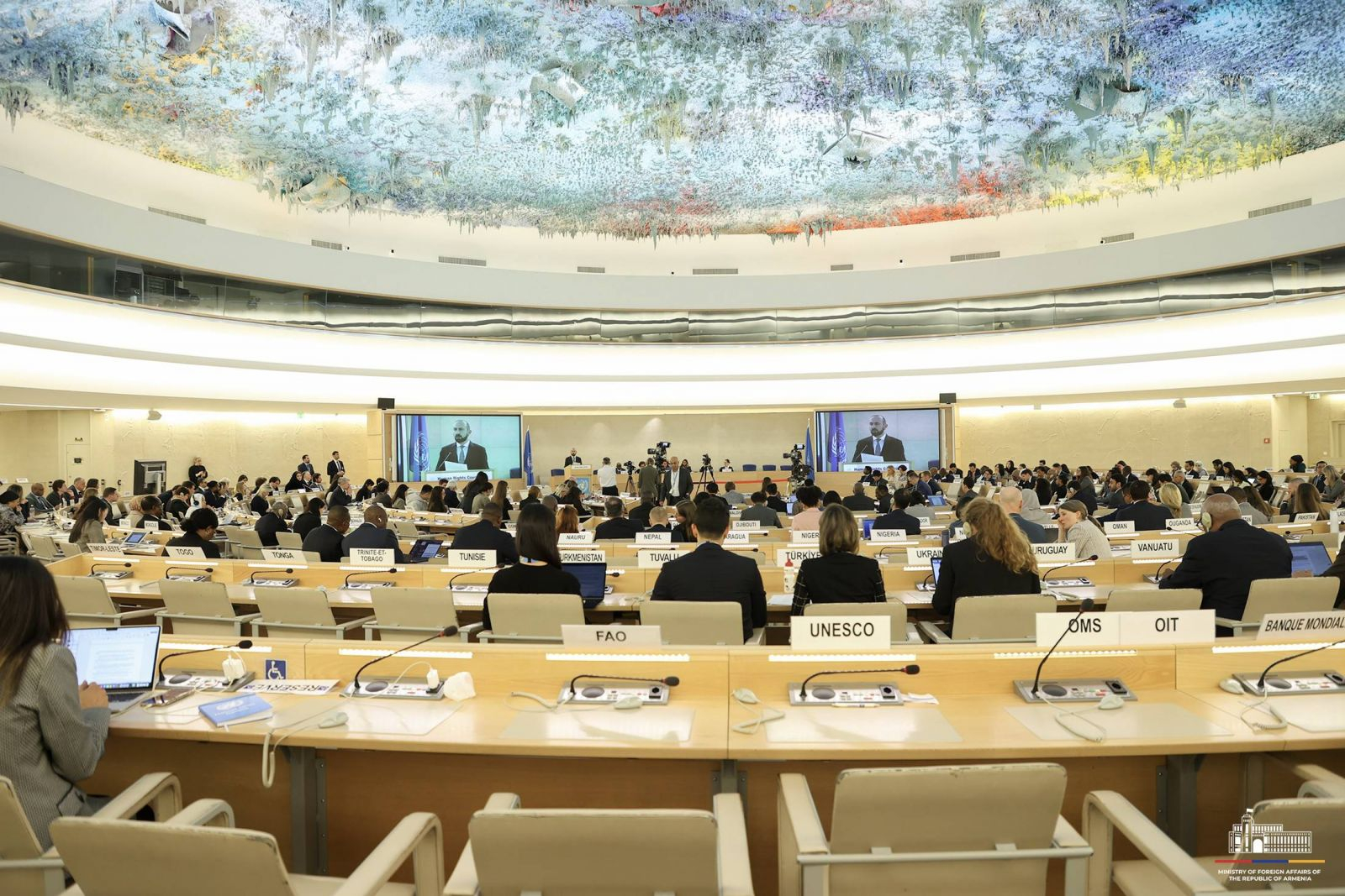 Հպարտությամբ կարող եմ նշել, որ նույնիսկ ամենադժվարին ժամանակներում Հայաստանը շարունակում է առաջընթաց գրանցել իր ժողովրդավարական ինստիտուտների ամրապնդման և զորացման, դատական անկախության ամրապնդման և կոռուպցիայի դեմ պայքարի ուղղությամբ՝ ավելի հավասար և արդար հասարակություն կառուցելու համար: Մենք վերջերս հիմնել ենք Մարդու իրավունքների ոլորտում միջազգային հաշվետվողականության ամրապնդման և դրանից բխող հետագա քայլերի ապահովման ազգային մեխանիզմ և դիտարկում ենք այն որպես կարևոր ներպետական գործիք՝ քաղաքականության բոլոր ոլորտներում իրավունքահեն մոտեցում ապահովելու համար։ Այս տարվա ընթացքում Հայաստանը կներկայացնի իր 4-րդ Համընդհանուր պարբերական զեկույցը, որն ամփոփվել է պետական և ոչ պետական դերակատարների միջև բազմաթիվ խորհրդակցությունների հիման վրա։