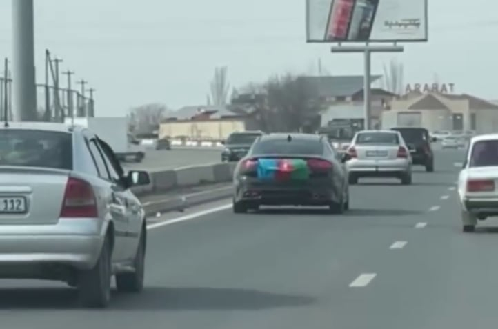 Համացանցում տեսանյութ է տարածվել, թե ինչպես է մի մեքենա երթևեկում ճանապարհին՝ բեռնախցիկին Ադրբեջանի դրոշ։ Այդ մասին ասված է ՆԳ նախարարի մամուլի քարտուղար Նարեկ Սարգսյանի Ֆեյսբուքի էջում: