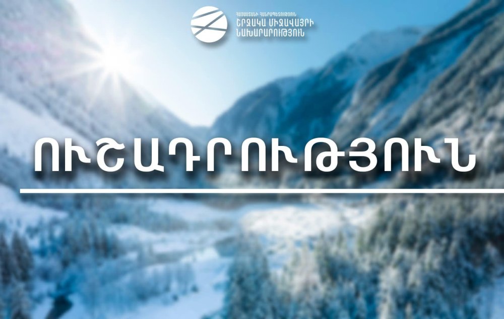 Շրջակա միջավայրի նախարարությունը տեղեկացնում է, որ հանրապետությունում դիտվող բարձր ջերմաստիճանի պայմաններում, արևի ճառագայթների ազդեցությամբ ձյան զանգվածները լեռնային շրջաններում սկսում են ակտիվորեն հալվել, դրանց ջրապարունակությունը և զանգվածը մեծանում է, ինչը հանգեցնում է ձնահյուսերի վտանգի հավանականության բարձրացման:
