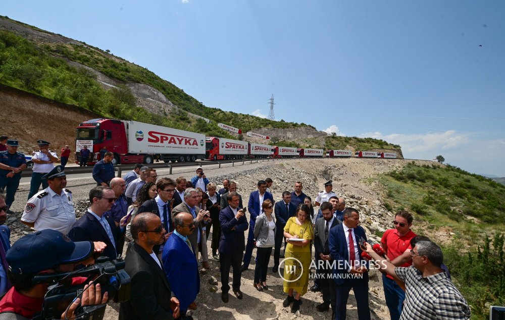 Հիշեցնենք, որ մինչ այս պահը Կոռնիձորում շարունակում է մնալ 19 բեռնատարերի շարասյուն, որոնցում գտնվում է շուրջ 360 տոննա հումանիտար բեռ, մասնավորապես՝ առաջին անհրաժեշտության 7 տեսակի պարենային ապրանքներ։ Այդ սնունդը նախատեսված է հասցեագրել արդեն ամիսներ շարունակ պարենի անհասանելիություն ունեցող ԼՂ 120 հազար բնակիչների կարիքներին։