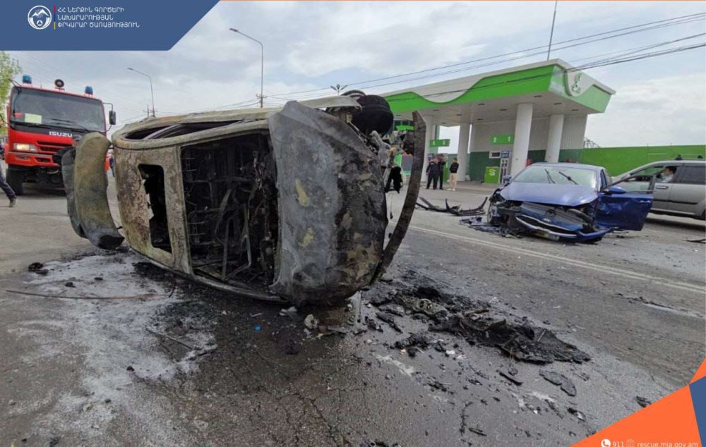Պարզվել է, որ բախվել են «Mercedes-Benz», «Kia» և «Hyundai» մակնիշների ավտոմեքենաները․ «Hyundai» մակնիշի ավտոմեքենայում հրդեհ է բռնկվել։