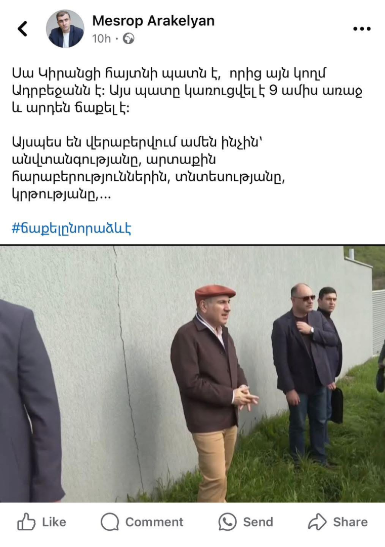 Ու հիմա նա խոսում է ինչ-որ ճաքերի մասին՝ մոռանալով սեփական «ճաքած» կամ ավելի շուտ «տրաքած» քաղաքական արժեհամակարգի մասին։
