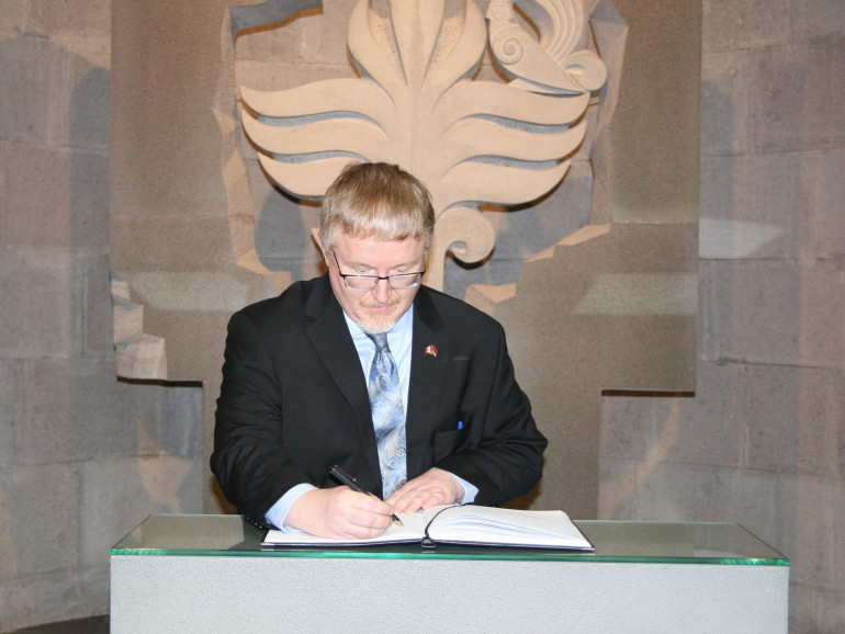 «Շատ հպարտ եմ, որ Կանադան ճանաչել է Հայոց ցեղասպանությունը։ Ես ինքս իմ դիվանագիտական կարիերայի ընթացքում շատ փոքր դերակատարում եմ ունեցել այդ գործում՝ կատարելով հետազոտական աշխատանքներ և մշակելով դրա մասին մեր սենատորներից մեկի ելույթի նախագիծը։ Դա մի բան է, որի համար ես մեծ հպարտություն եմ զգում»,-ընդգծել է Կանադայի դեսպանը։