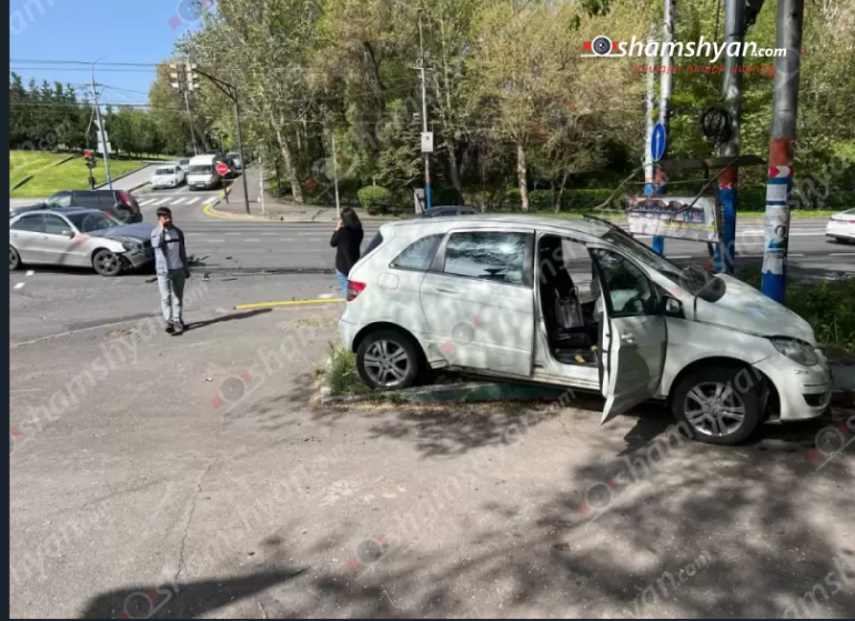 Բախման հետևանքով «Mercedes»-ներից մեկը դուրս է եկել երթևեկելի գոտուց, հայտվել կանաչ գազոնում և բախվել երկաթե սյանը։
