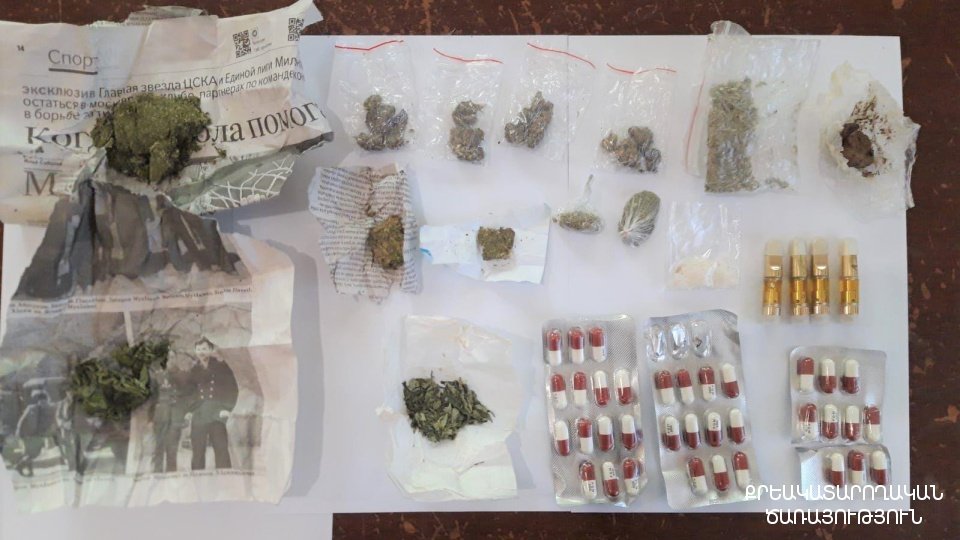 Փաթեթում առկա են եղել մեծ քանակությամբ առանձնացված այլ փաթեթներ՝ ընդհանուր 34,1 գրամ քաշով, տարբեր տեսակի թմրանյութերին նմանվող զանգվածներով, դեղապատիճներով և կասկածելի հեղուկներով: Մասնավորապես՝ մարիխուանա տեսակի թմրամիջոցին նմանվող, 28,3 գրամ քաշով դեղնականաչավուն զանգված, ափիոն տեսակի թմրամիջոցին նմանվող, 4,5 գրամ քաշով դարչնագույն զանգված, մեթամֆետամին տեսակի թմրամիջոցին նմանվող, 1,3 գրամ քաշով սպիտակ, բյուրեղանման զանգված, ինչպես նաև՝ 35 հատ «PGN-300» գրառմամբ, լիրիկա տեսակի հոգեմետ դեղապատիճ և 4 գլանակ՝ սուր հոտ ունեցող կասկածելի հեղուկով: