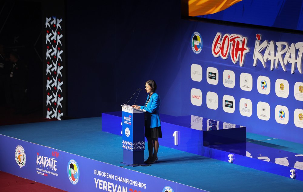 ԿԳՄՍ նախարար Ժաննա Անդրեասյանը շնորհավորել է ներկաներին Եվրոպայի կարատեի մեծահասակների առաջնության մեկնարկի կապակցությամբ՝ ընդգծելով՝ այս առաջնության անցկացումը պատմական իրադարձություն է հայաստանյան կարատեի պատմության մեջ: