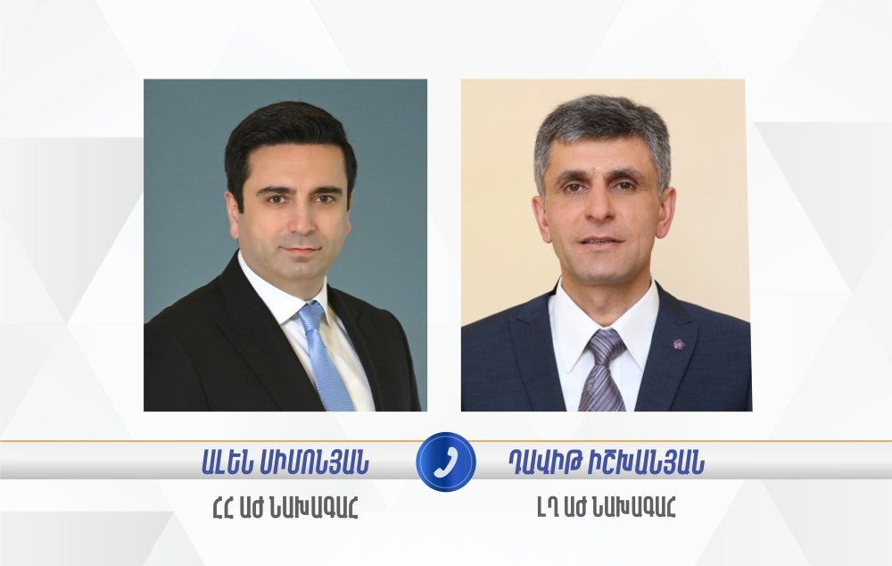 ՀՀ ԱԺ նախագահ Ալեն Սիմոնյանն այսօր հեռախոսազանգ է ունեցել Լեռնային Ղարաբաղի Ազգային ժողովի նորընտիր նախագահ Դավիթ Իշխանյանի հետ: ՀՀ ԱԺ նախագահը շնորհավորել է գործընկերոջը բարդ շրջանում պատասխանատու պաշտոն ստանձնելու առթիվ` մաղթելով հաջողություններ: