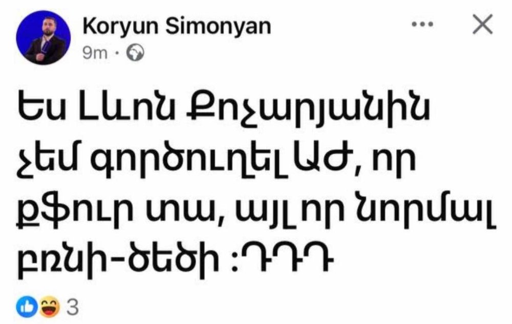 Լրագրող Կորյուն Սիմոնյանը ֆեյսբուքյան իր էջում գրել է․