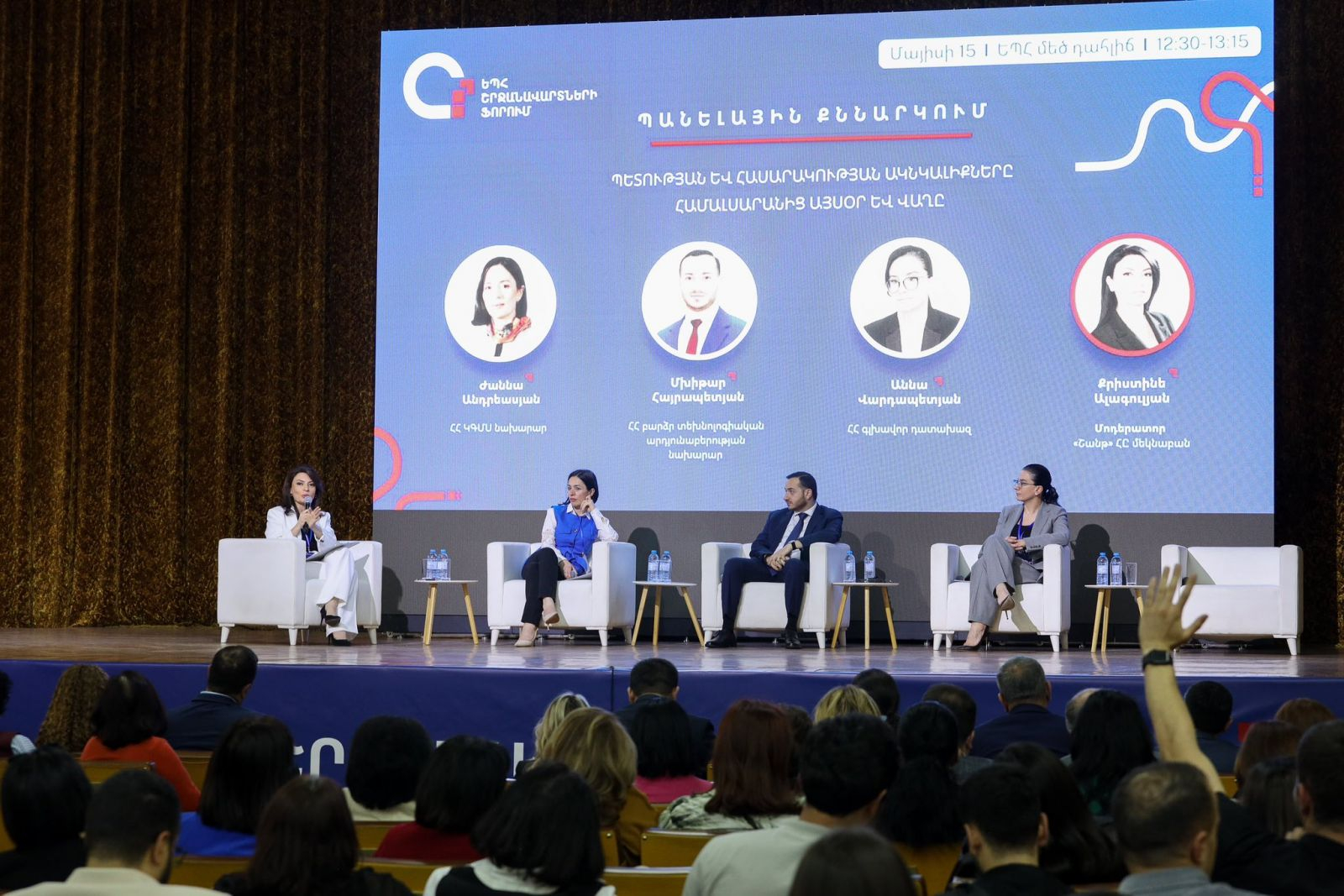Պանելային քննարկմանը մասնակցել են նաև ՀՀ ԿԳՄՍ նախարար Ժաննա Անդրեասյանը և ՀՀ գլխավոր դատախազ Աննա Վարդապետյանը»,- նշված է գրառման մեջ։