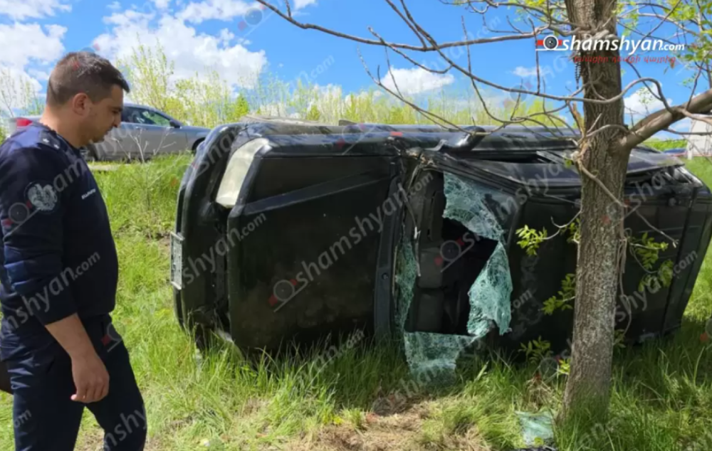 Բախման հետևանքով «Mitsubishi»-ն դուրս է եկել երթևեկելի գոտուց և կողաշրջված հայտնվել դաշտում: