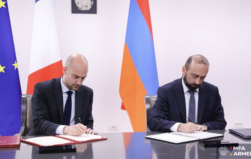 ՀՀ ԱԳ նախարար Արարատ Միրզոյանը և Ֆրանսիայի ԱԳ նախարար Ժան-Նոել Բարոն ստորագրել են «Մտադրությունների մասին» հռչակագիր, որը նախատեսում է մասնավորապես երկու երկրների արտաքին գերատեսչությունների միջև տարեկան քաղաքական խորհրդակցությունների անցկացում, համագործակցություն ապատեղեկատվության դեմ պայքարում և դիվանագետների վերապատրաստում: