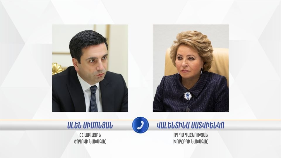 Հ ԱԺ նախագահ Ալեն Սիմոնյանն այսօր հեռախոսազրույց է ունեցել ՌԴ ԴԺ Դաշնության խորհրդի նախագահ Վալենտինա Մատվիենկոյի հետ: ՀՀ ԱԺ նախագահը ցավակցական խոսքեր է փոխանցել նախօրեին Մախաչկալայի բենզալցակայանի պայթյունի պատճառով զոհվածների ընտանիքներին, հարազատներին եւ արագ ապաքինում մաղթել տուժածներին:
