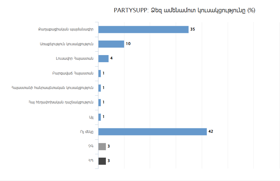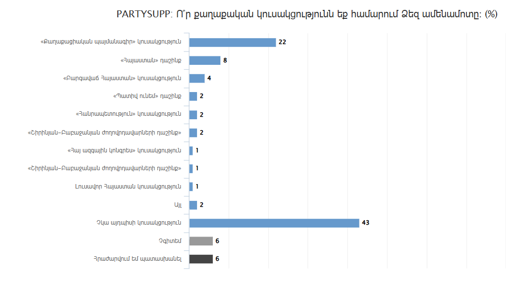 2021 թ․-ին հարցվածների 43 տոկոսը նշել է, որ չկա այդպիսի կուսակցություն, որին իրեն մոտ է համարում։