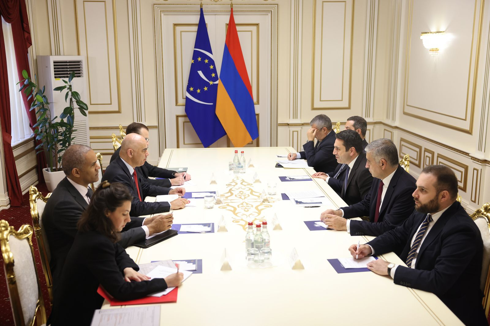 ՀՀ ԱԺ նախագահ Ալեն Սիմոնյանը հանդիպել է Եվրոպայի խորհրդի գլխավոր քարտուղար Ալեն Բերսեի հետ: Ողջունելով զրուցակցին` Ալեն Սիմոնյանը շնորհակալություն է հայտնել Եվրոպայի խորհրդի գլխավոր քարտուղարին Հայաստան կատարած այցի համար: