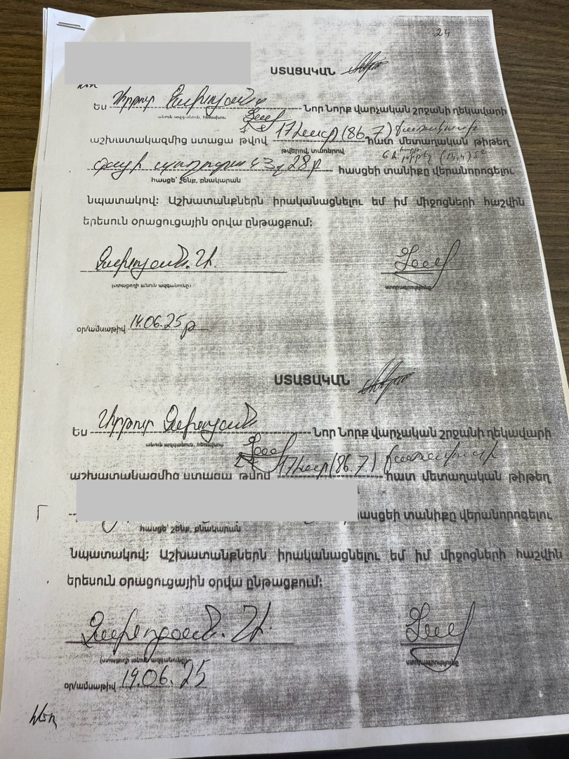Ըստ նախնական պարզաբանման՝ վարչական շրջանի աշխատակցի կողմից նշված դիմումը սխալմամբ ներառվել է շենքերի տանիքների երկաթյա թիթեղներ տրամադրելու ցանկում։