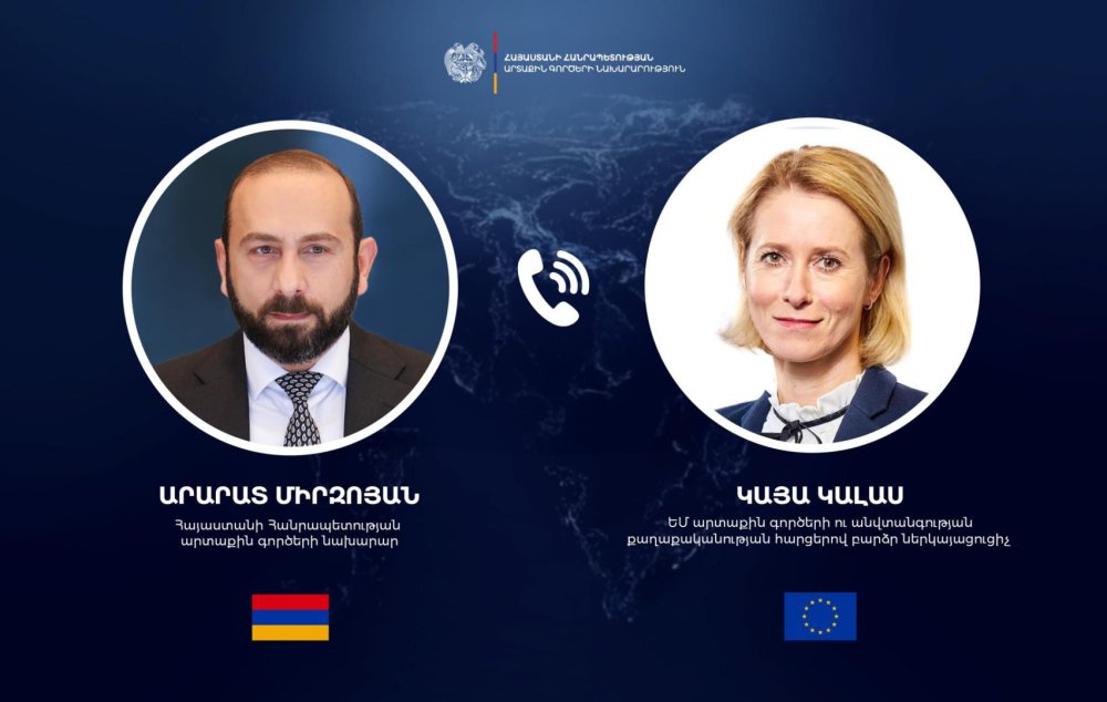 ՀՀ ԱԳ նախարար Արարատ Միրզոյանը հեռախոսազրույց է ունեցել Եվրոպական հանձնաժողովի փոխնախագահ, ԵՄ արտաքին գործերի ու անվտանգության քաղաքականության հարցերով բարձր ներկայացուցիչ Կայա Կալասի հետ։ Այդ մասին հայտնում է ՀՀ ԱԳՆ-ն: